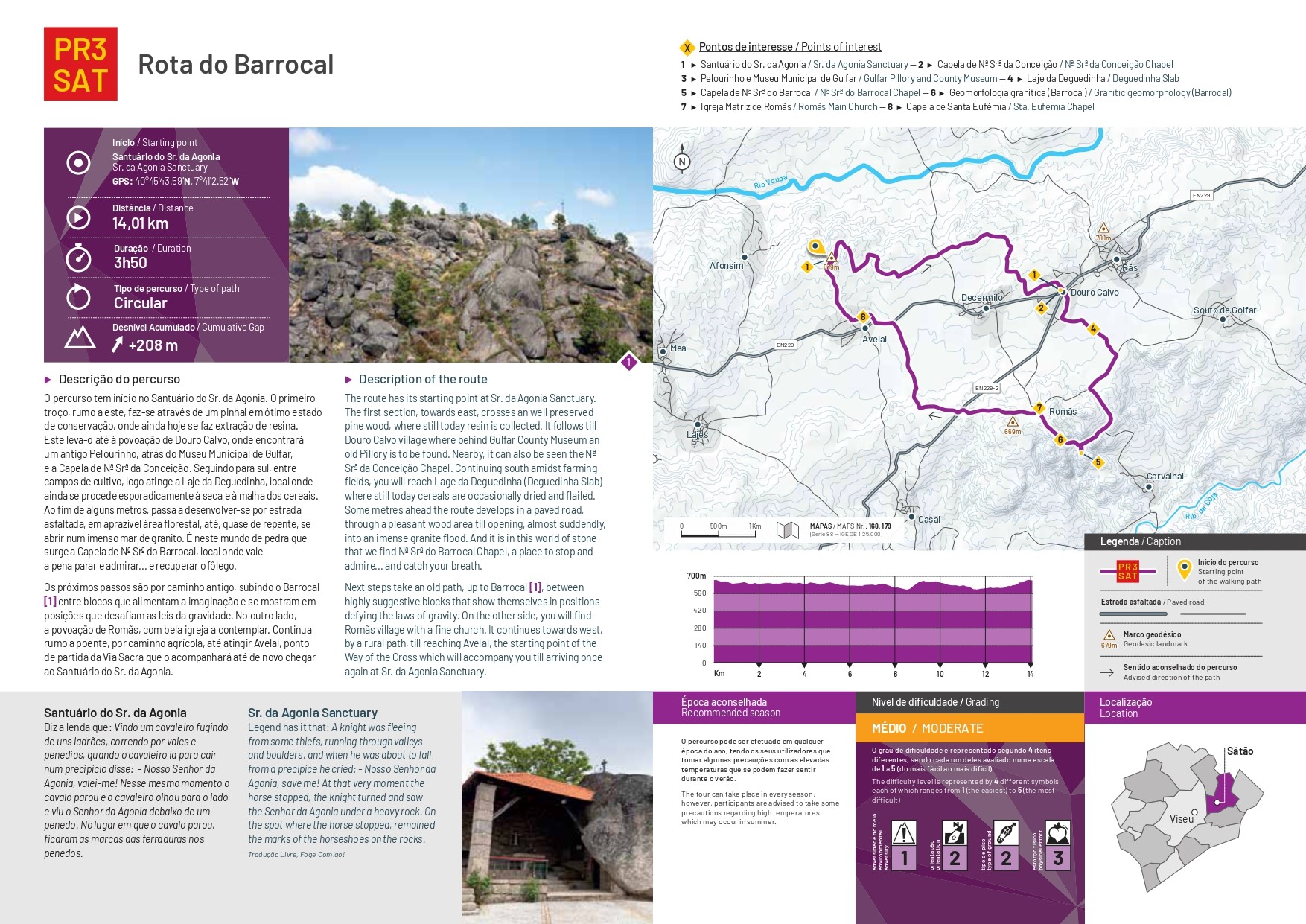 A Rota do Barrocal é também outra forma de visitares alguns pontos de interesse do concelho de Sátão. Este percurso circular com cerca de 14 km inicia no Santuário de Nosso Senhor da Agonia, segue em direção à Capela de Nossa Senhora do Barrocal, onde mesmo ao lado existe uma gruta. Continuando esta caminhada acompanhado pela natureza vais chegar à povoação de Douro Calvo onde podes ver o antigo pelourinho, o Museu Municipal de Gulfar e a Capela de Nossa Senhora da Conceição.
