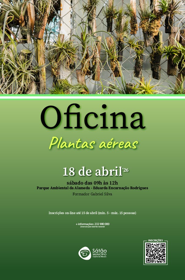 No próximo dia 18 de abril de 2026, sábado, o Município de Sátão em colaboração com a CLDS 5G ‘Sátão-Mais Inclusão’ irá promover, no Parque Ambiental da Alameda Eduarda da Encarnação Rodrigues, a oficina de “Plantas aéreas”, das 09h00 às 12h00.