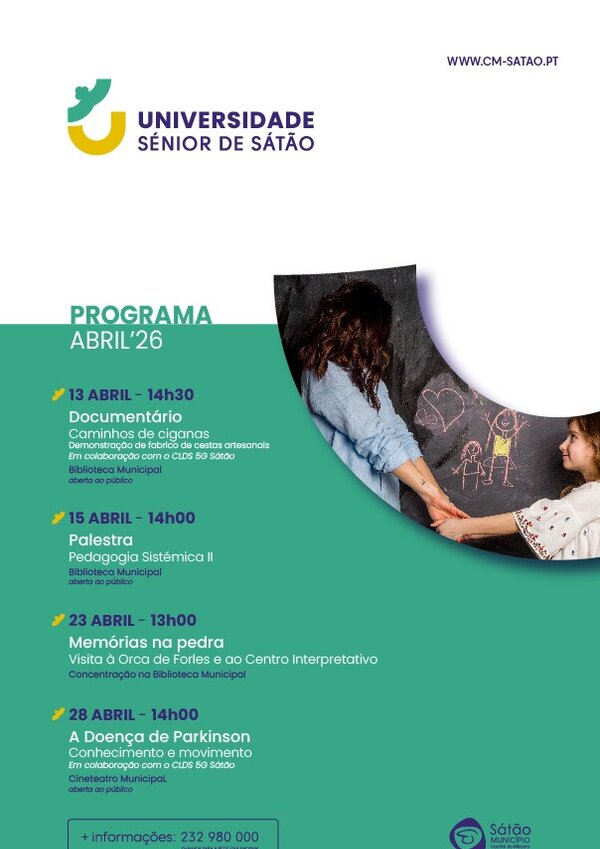 Programação do mês de abril, da Universidade Sénior de Sátão