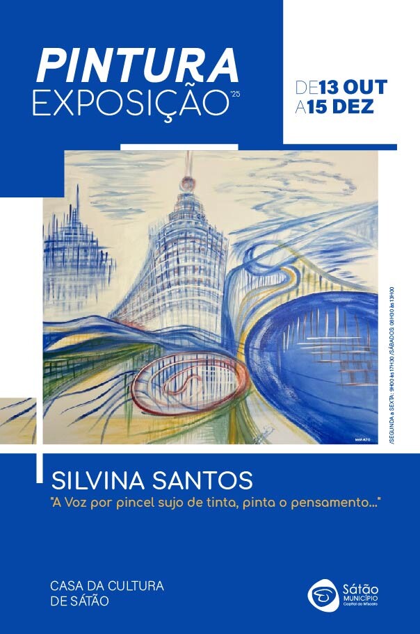 A partir do dia 13 de outubro, a Casa da Cultura de Sátão recebe a exposição de pintura "A Voz por pincel sujo de tinta, pinta o pensamento ...". A mostra estará patente ao público até 15 de dezembro, reunindo um conjunto de obras que refletem o percurso artístico de Silvina Santos.