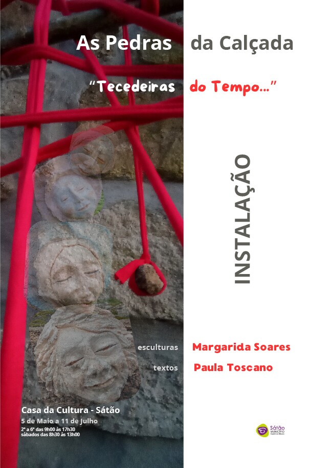 A Casa da Cultura de Sátão apresenta de 05 de maio a 11 de julho de 2025, a exposição “As Pedras da Calçada-Tecedeiras do Tempo”, com esculturas de Margarida Soares e textos de Paula Toscano, criando uma simbiose única entre arte e palavra.