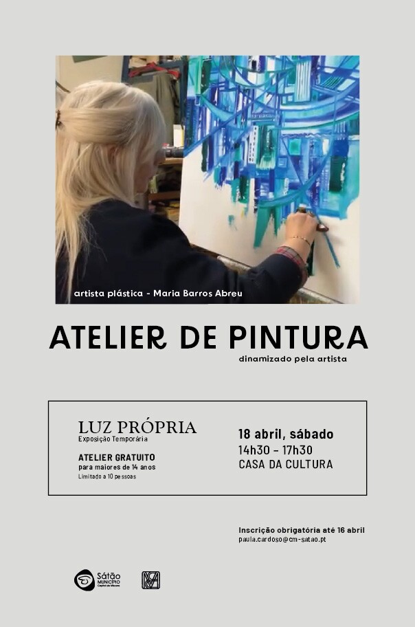 O Município de Sátão apresenta na Casa da Cultura, um atelier de pintura dinamizado pela artista plástica Maria Barros Abreu.