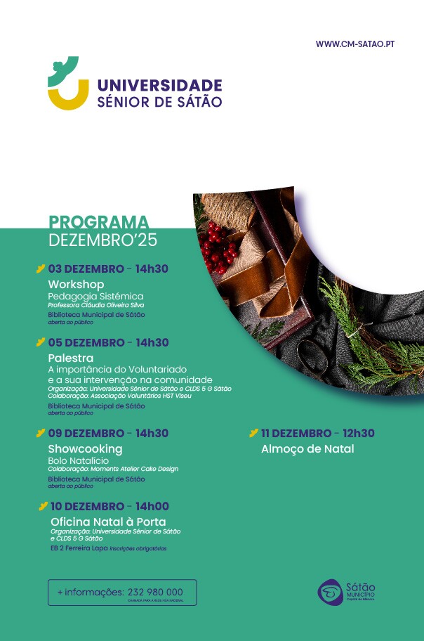 Divulgação das atividades do mês de dezembro da Universidade Sénior de Sátão.