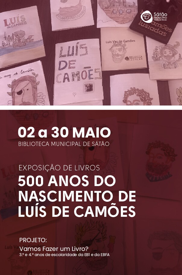 No ano em que se assinalam os 500 anos do nascimento de Luís Vaz de Camões, a Biblioteca Escolar do Agrupamento de Escolas de Sátão desafiou alunos e respetivos familiares a criarem um texto original em verso, em prosa ou mesmo de cariz informativo (biografia, notícia) sobre este Grande Poeta Português. Desta iniciativa, desenvolvida em quatro fases, realizadas entre dezembro e março, resultaram vinte e cinco livros, que estarão expostos, entre 1 e 31 de maio, na Biblioteca Municipal de Sátão.