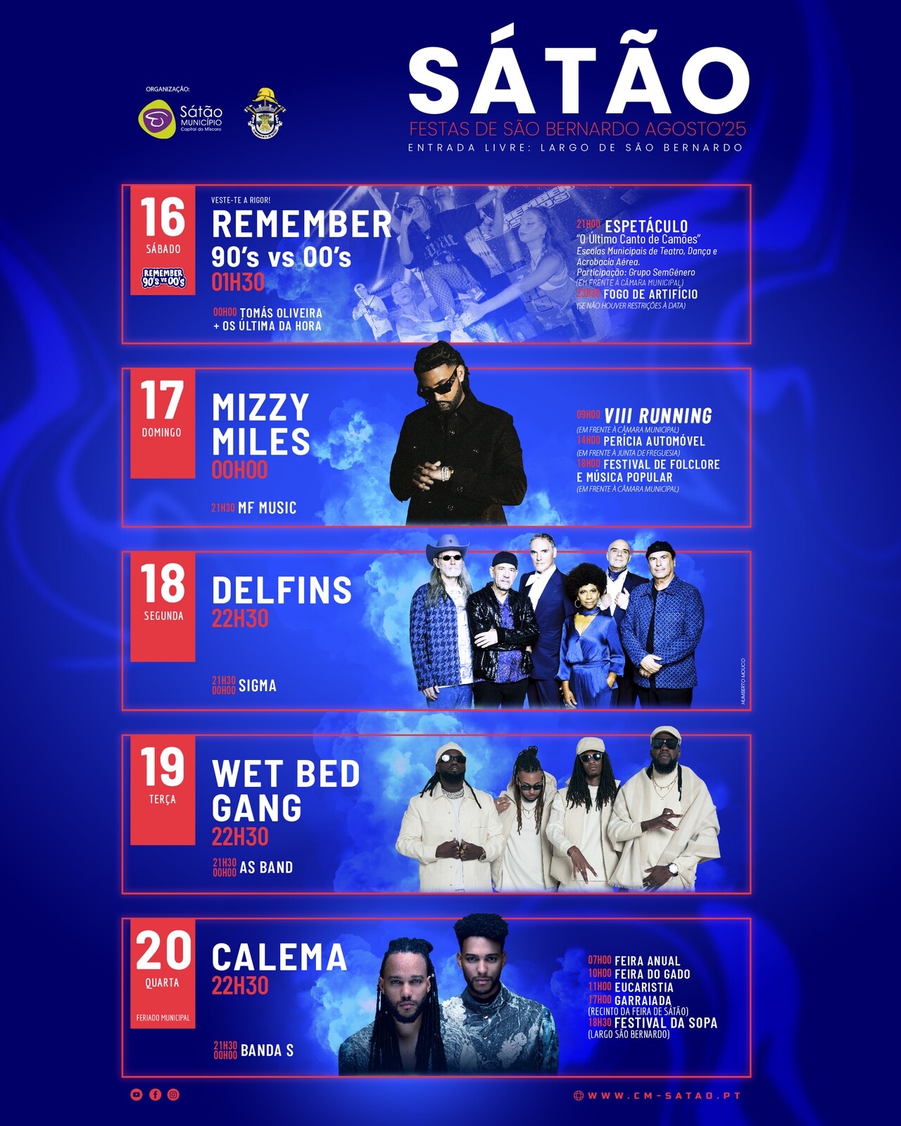 O programa arranca no sábado (16) com o espetáculo “O Último Canto de Camões”, seguido de fogo de artifício, Tomás Oliveira + Os Última da Hora e Remember 90’s vs 00’s.
