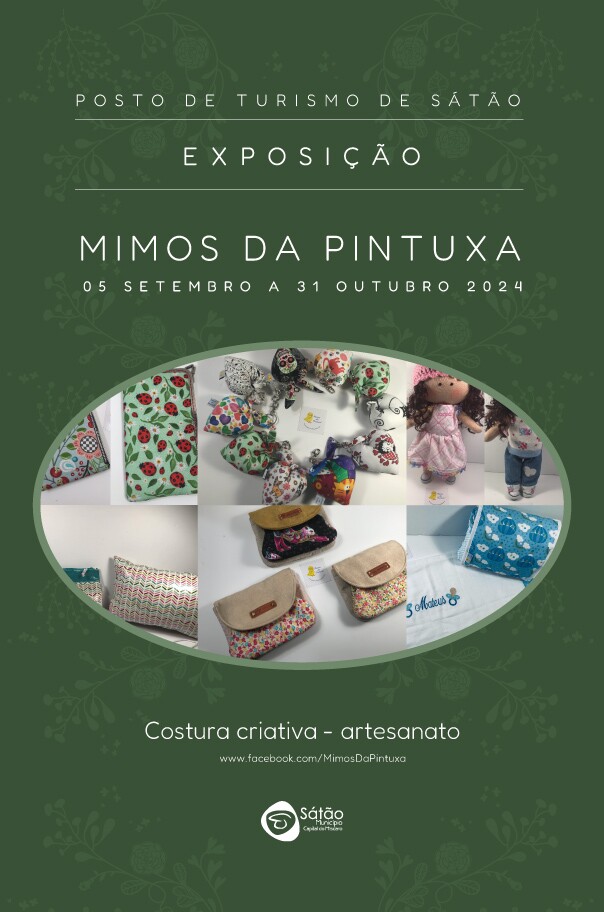 O Posto de Turismo de Sátão recebe a exposição de artesanato de costura criativa “Mimos da Pintuxa” da artesã Olga Pinto, de 05 de setembro a 31 de outubro de 2024.