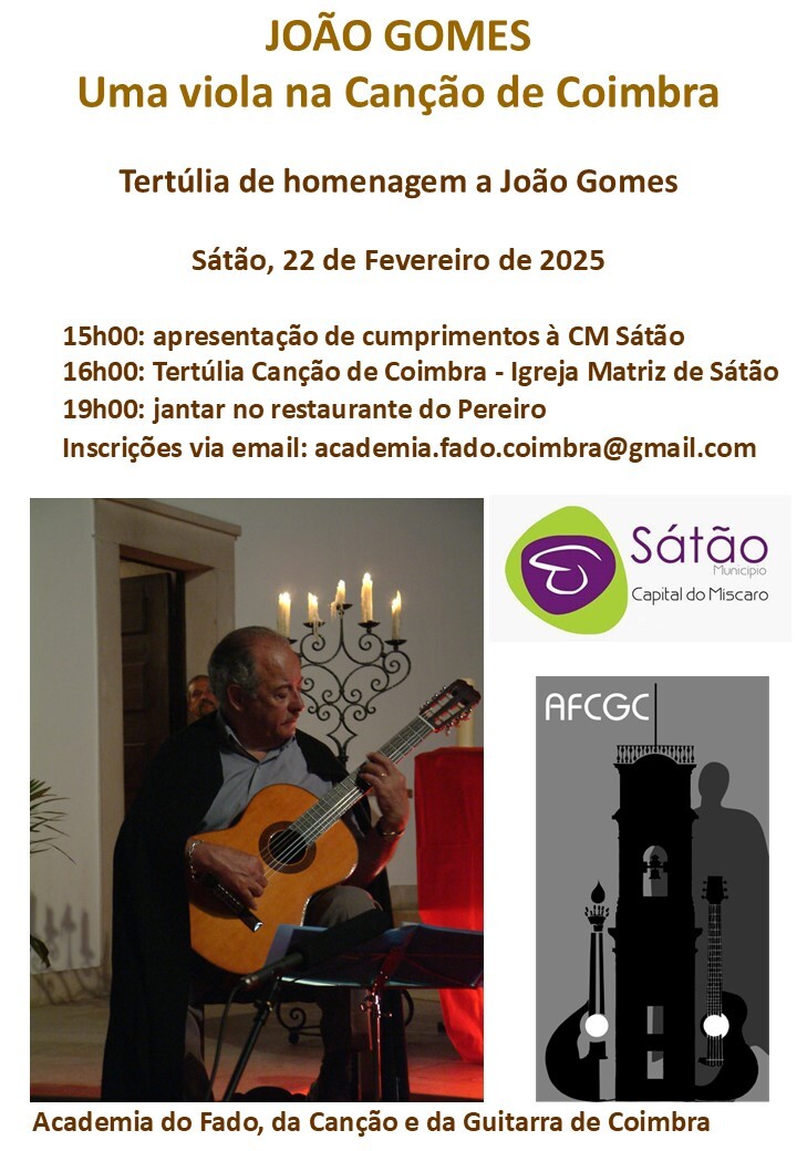 O Município de Sátão promove uma tertúlia de homenagem a João Gomes, Uma Viola na Canção de Coimbra
