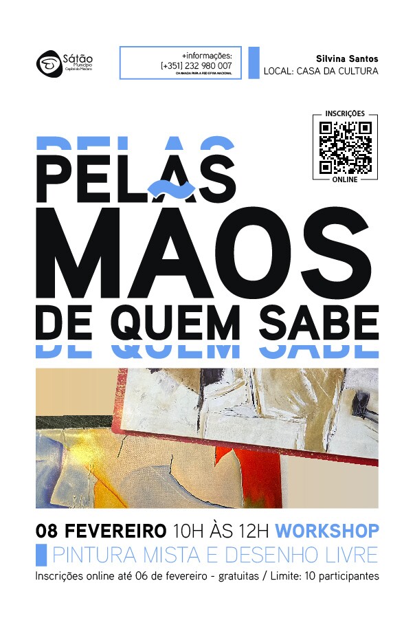 No âmbito da iniciativa “Pelas mãos de quem sabe”, vai decorrer no dia 08 de fevereiro de 2025, sábado, entre as 10h00 e as 12h00, na Casa da Cultura de Sátão, o workshop “Pintura mista e desenho livre” com Silvina Santos, natural de Vila Nova de Paiva.