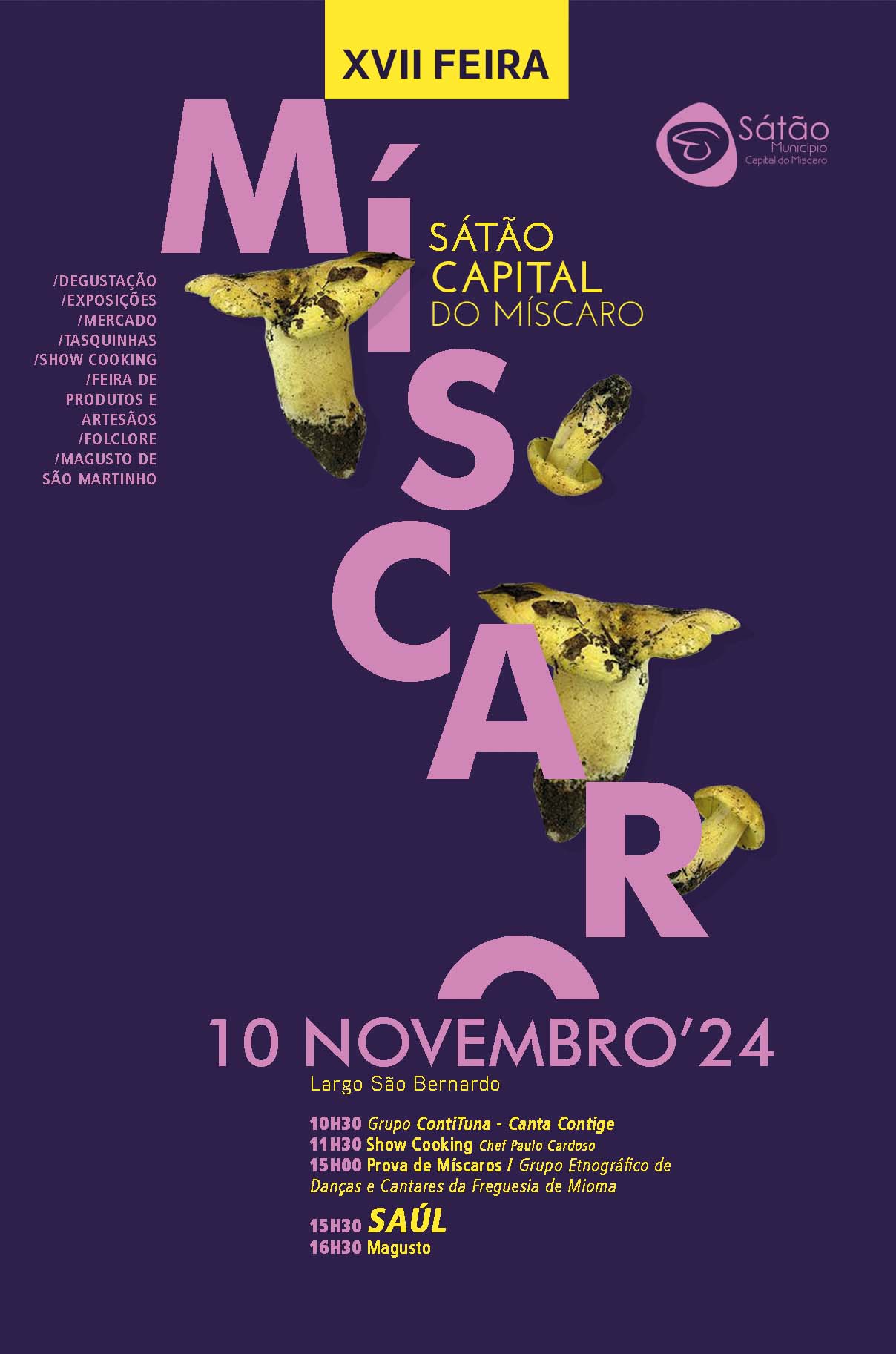 No dia 10 de novembro de 2024, todos os caminhos vão dar ao Largo de São Bernardo em Sátão, Capital do Míscaro. A partir das 09h00, a autarquia terá tudo a postos para apresentar um programa recheado de música, gastronomia e cultura.
