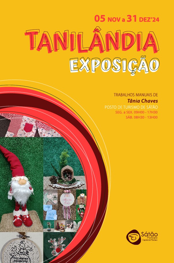 O Posto de Turismo de Sátão recebe a exposição de trabalhos manuais Tanilândia, de Tânia Chaves, de 05 de novembro a 31 de dezembro de 2024.