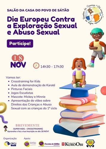 No âmbito do dia 18 de Novembro – Dia Europeu contra a Exploração Sexual e o Abuso Sexual e do dia 20 de Novembro – 34º Aniversário da Convenção sobre os Direitos da Criança, a CPCJ de Sátão irá promover um conjunto de atividades, em colaboração com o Município de Sátão, o Agrupamento de Escolas de Sátão, o Clube de Karaté – Kuro Obi e o Clube de Cross Fit - Crosstraining for Kids, para as crianças e jovens.
