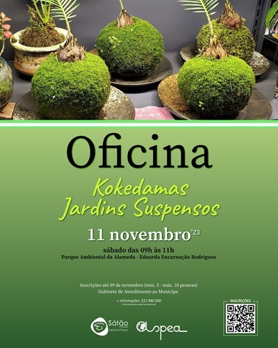 No próximo dia 11 de novembro de 2023, sábado, a Câmara Municipal de Sátão e a Associação Portuguesa de Educação Ambiental (ASPEA) promovem no Parque Ambiental da Alameda Eduarda da Encarnação Rodrigues, a oficina “Kokedamas – jardins suspensos”, das 09h00 às 11h00.