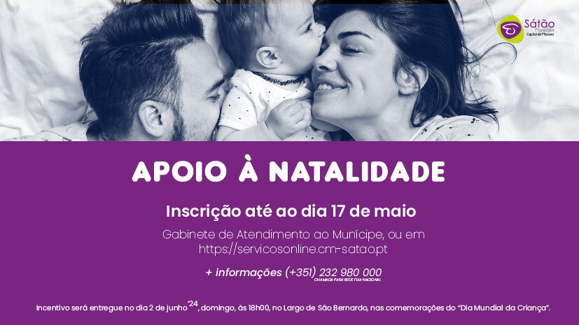 A Câmara Municipal de Sátão informa que se encontram abertas as inscrições para o apoio à natalidade, incentivo social que tem vindo a ser atribuído ao longo dos anos a todas as crianças nascidas neste concelho.