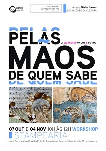 No âmbito da iniciativa “Pelas mãos de quem sabe”, vai decorrer nos dias 07 de outubro e 04 de novembro, sábado, entre as 10h00 e as 12h00, na Casa da Cultura de Sátão, o workshop de Stampearia, com a artesã Silvina Santos.