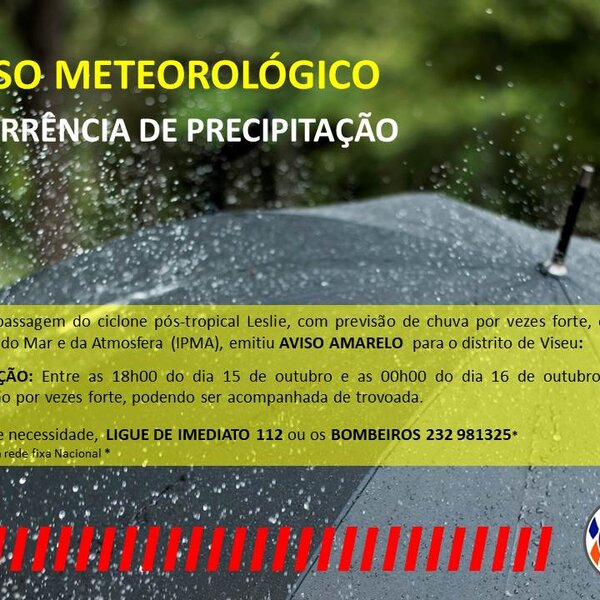 14 Outubro 2024Aviso Meteorológico - Ocorrência de precipitação