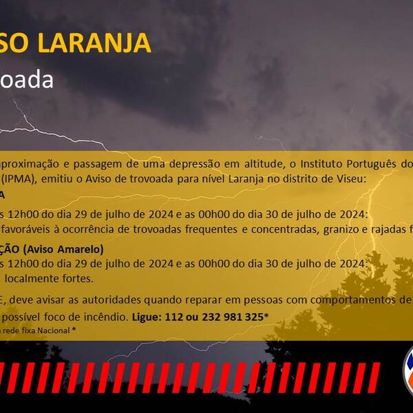 29 Julho 2024Aviso meteorológico