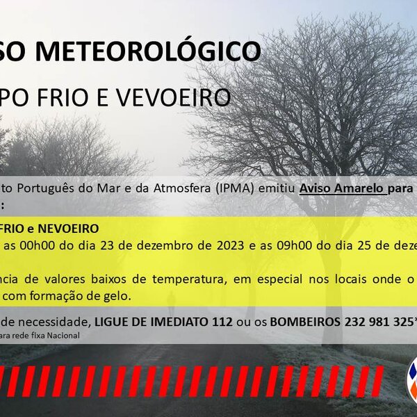 22 Dezembro 2023Aviso - Tempo frio e Nevoeiro