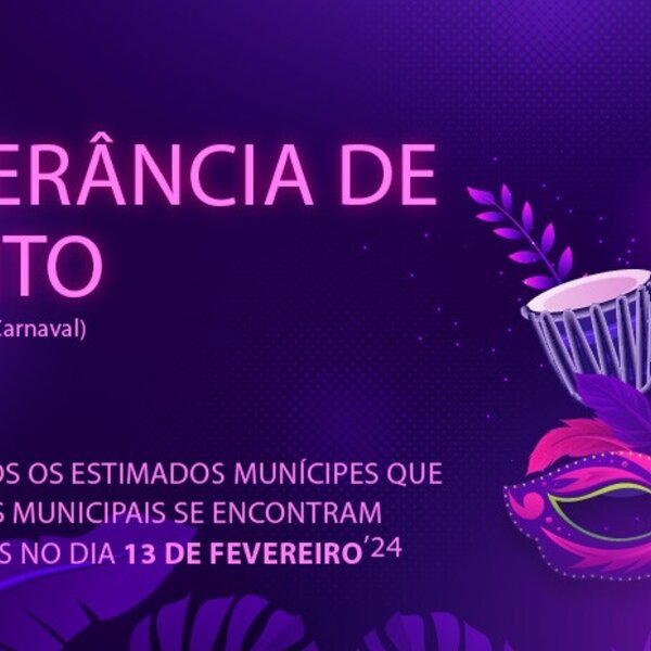 13 Fevereiro 2024Tolerância de Ponto - Terça Feira de Carnaval