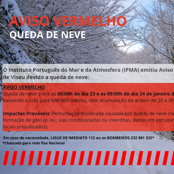 22 Janeiro 2026Aviso Vermelho - queda de neve