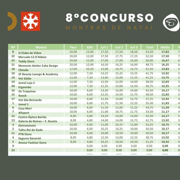 Resultados finais da 8ª edição do concurso “Montras de Natal”