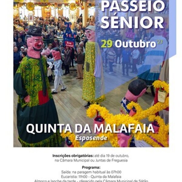 05 Outubro 2023PASSEIO SÉNIOR EM SÁTÃO COM INSCRIÇÕES ABERTAS