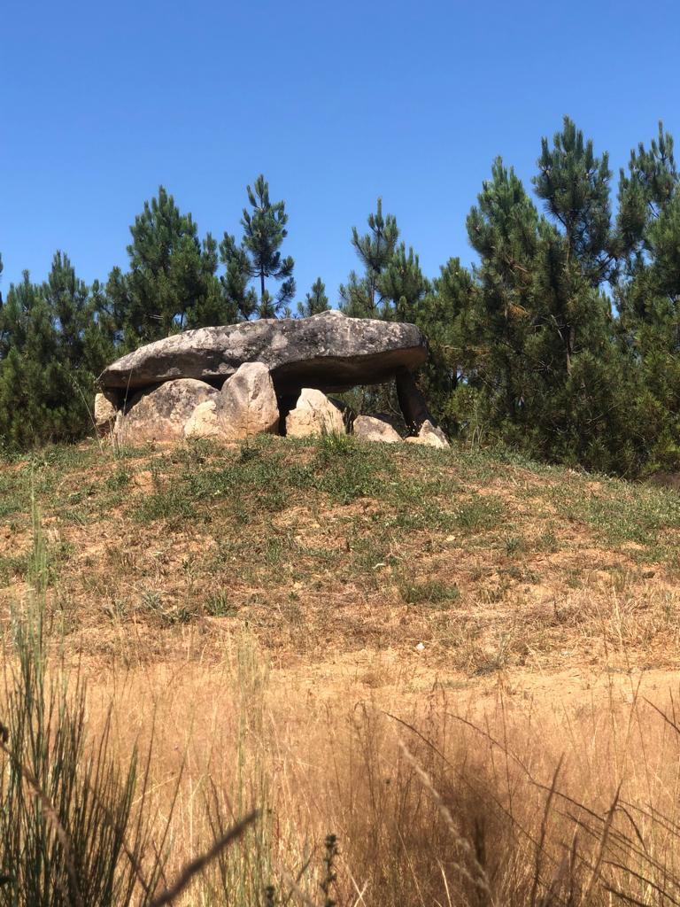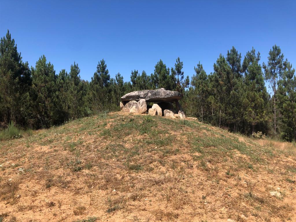 Trata-se de um monumento de câmara poligonal de nove esteios e o corredor médio. A tampa da câmara ou chapéu, profusamente esculpida, possui 55 covinhas e um raro motivo de círculos concêntrico, que, segundo os autores do estudo, este poderá ter sido esculpido num momento anterior à edificação do monumento.