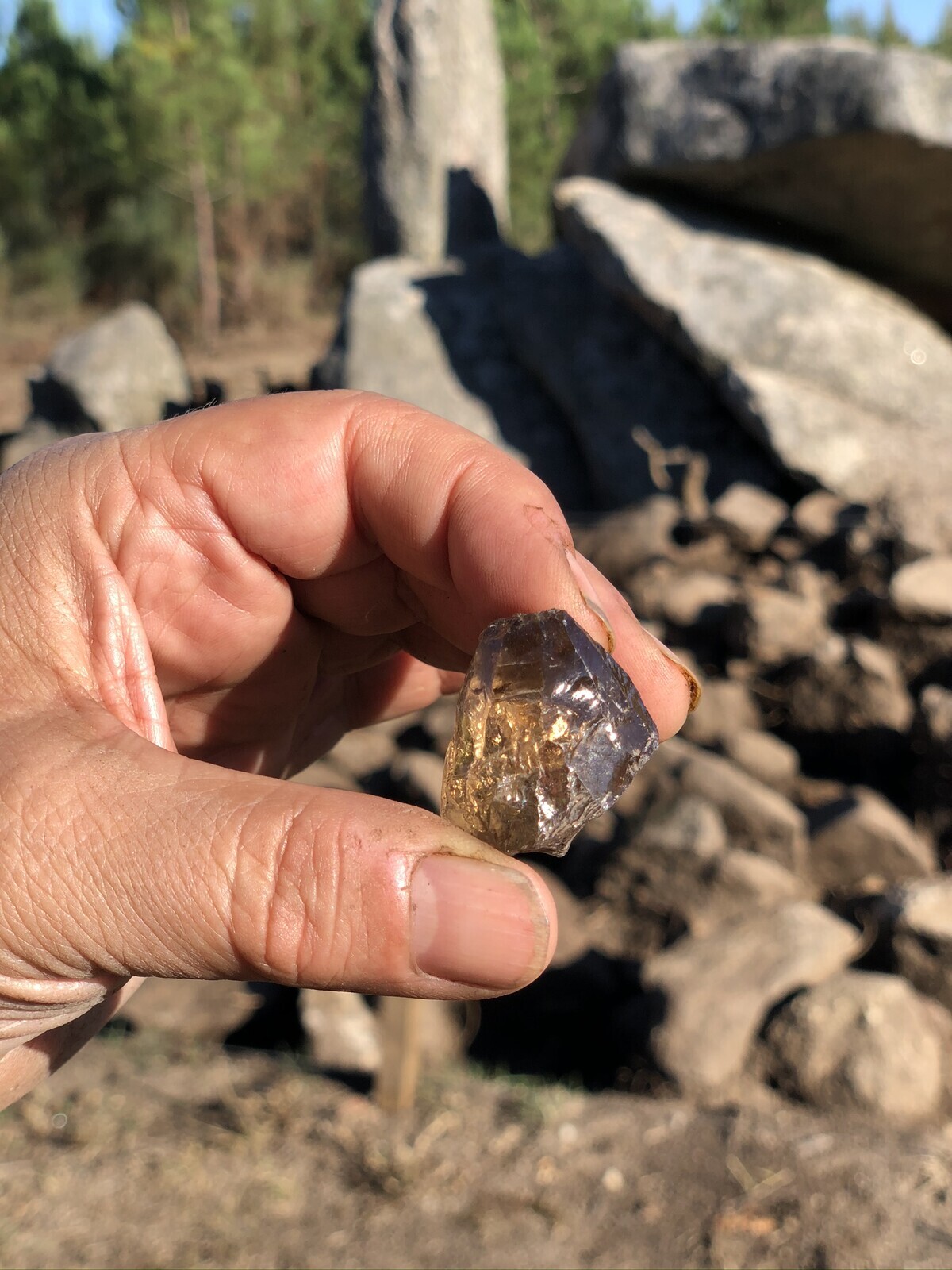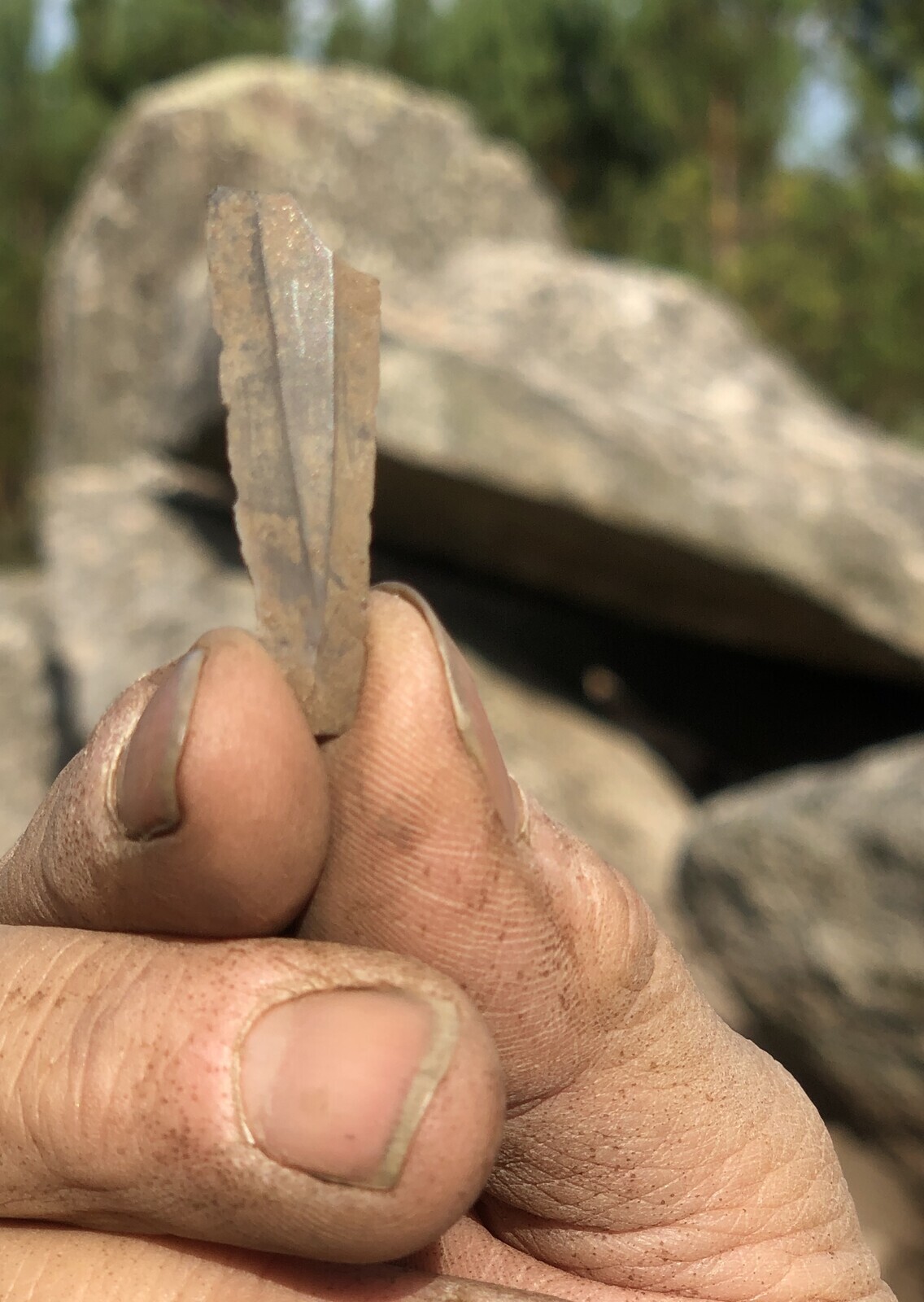 Um outro aspeto muito interessante é o espólio recolhido das diferentes fases de utilização, com destaque para um fragmento de alabarda em sílex, objeto excecional associado a uma pessoa de grande relevo social.